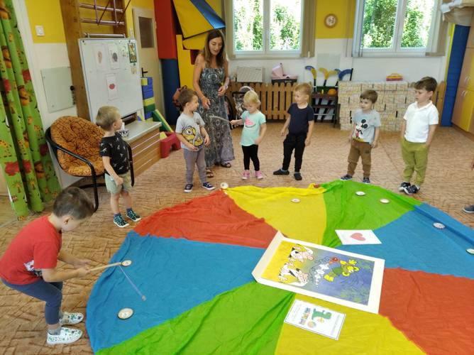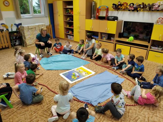 Děti poznávaly nové kamarády, s kterými si nejen hrály, ale také zpívaly, tančily a tvořily. Nechyběly ani hudební a tělovýchovné chvilky, dokonce děti zvládly i cvičení s padákem.