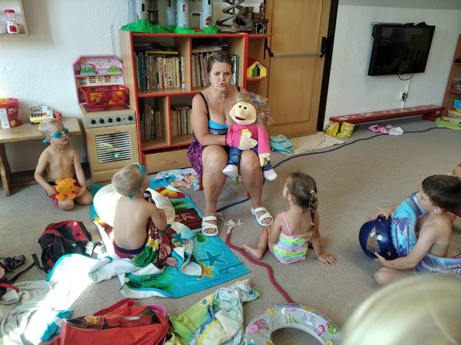 První dny ve školce se malí Vodníčci seznámili se skřítkem Rákosníčkem, který je bude provázet po celý rok.