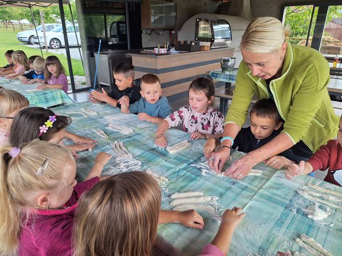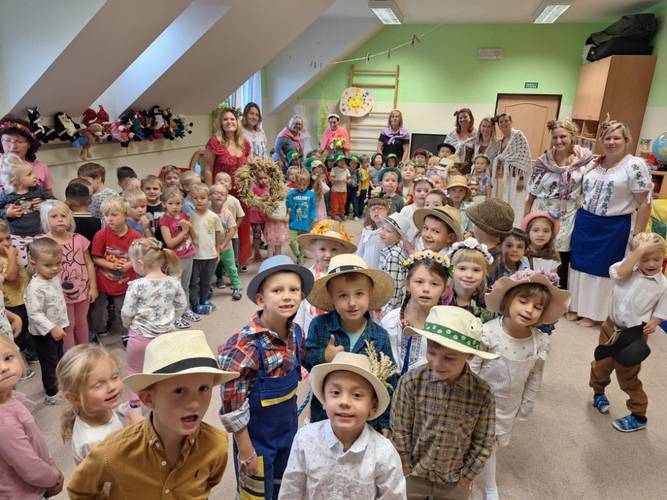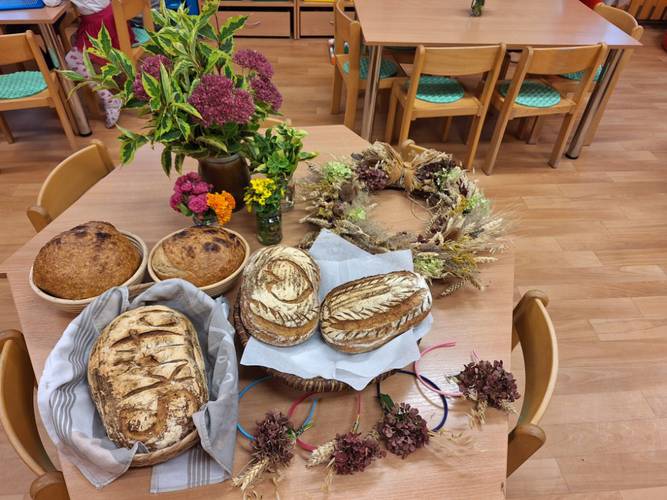 Oslavě předcházelo seznámení s tradicí, kdy se děti dozvěděly, jak se úroda sklízela před dávnými lety a jak se sklízí nyní. Vzpomínaly na výlet na Farmu Moulisových a vyzkoušely si zadělat ve školce domácí chléb. Naučily se spoustu nových písní, které pak předvedly v pásmu dětem v celé mateřské škole ...