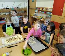 První polovinu října jsme s beruškou Bety vnímali sklizeň podzimní úrody opravdu všemi svými smysly. Pozorovali jsme, poznávali, třídili, řadili, jmenovali, počítali, potěžkávali, loupali, krájeli, míchali, pekli, ochutnávali, besedovali, hledali v přírodě a v knihách, výtvarně tvořili, řešili rébusy, zpívali, s „ovocem“ jsme i cvičili.