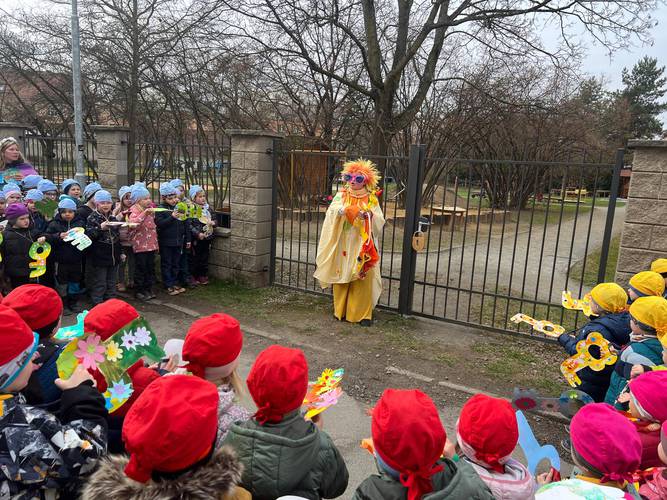 Jarní zahrádku s námi přišlo odemknout i poněkud nesmělé Sluníčko, kterému se letos příliš nechtělo vylézt z mračných duchen. Naštěstí naše písnička a společný taneček na zahradě Sluníčko natolik potěšily, že se dostalo do té správné jarní nálady a rozvernosti.